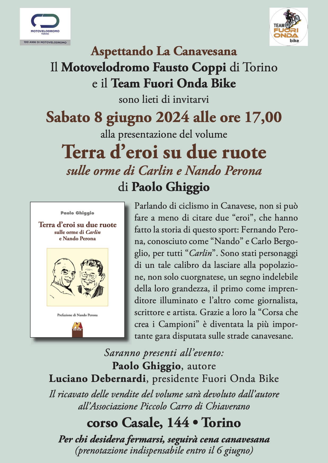 -SABATO 8 GIUGNO: ASPETTANDO LA CANAVESANA. Pedalata enogastronomica e presentazione volume "Terra d'eroi su due ruote" di Paolo Ghiggio.