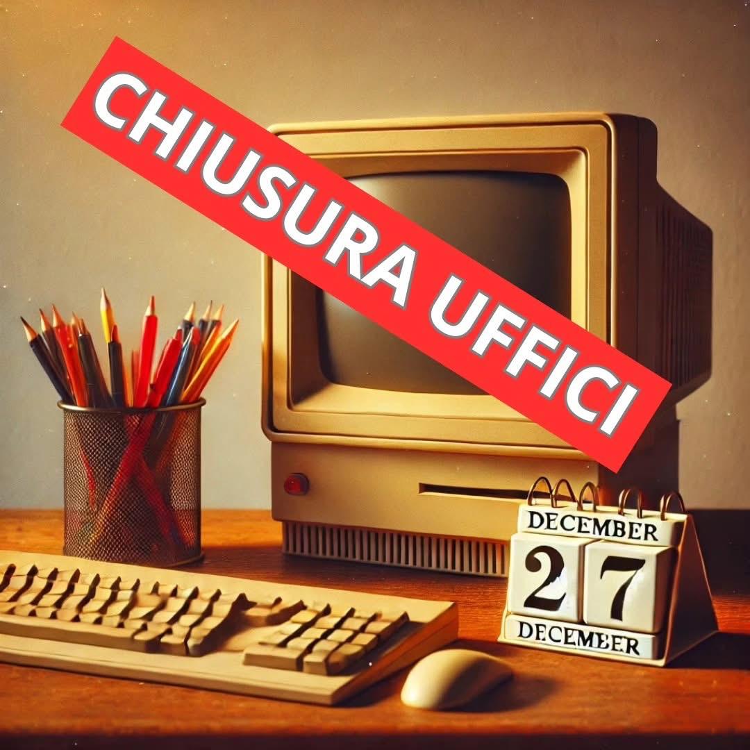 Si avvisa la Cittadinanza che, con deliberazione della Giunta Comunale n. 89 del 27/11/2025, è stata disposta la CHIUSURA di tutti gli UFFICI COMUNALI il giorno VENERDI' 2 GENNAIO 2026.