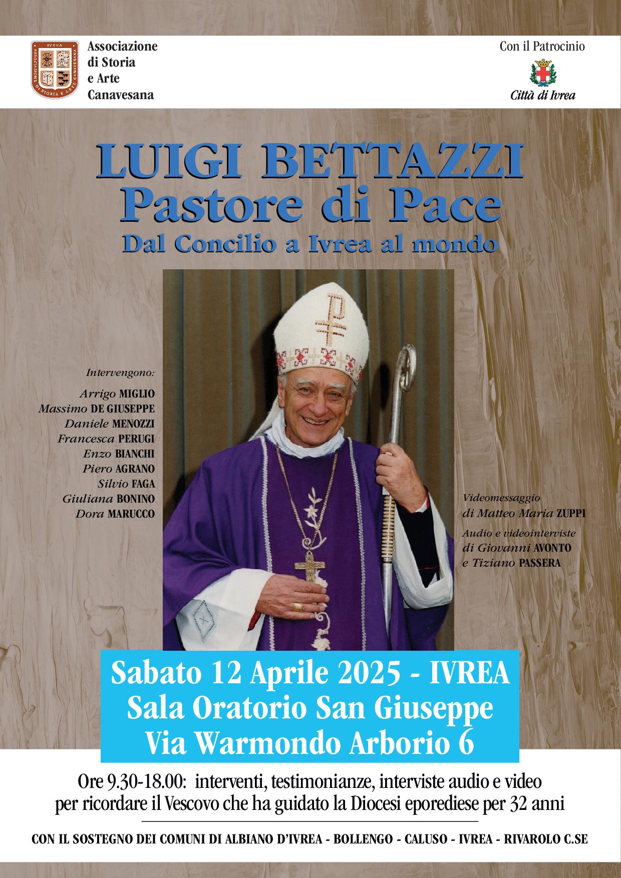 Sabato 12 aprile 2025, presso la Sala dell’Oratorio San Giuseppe di via Warmondo Arborio 6 - Ivrea, si terrà una giornata per ripercorrere l’eredità spirituale e civile di Monsignor Luigi Bettazzi.